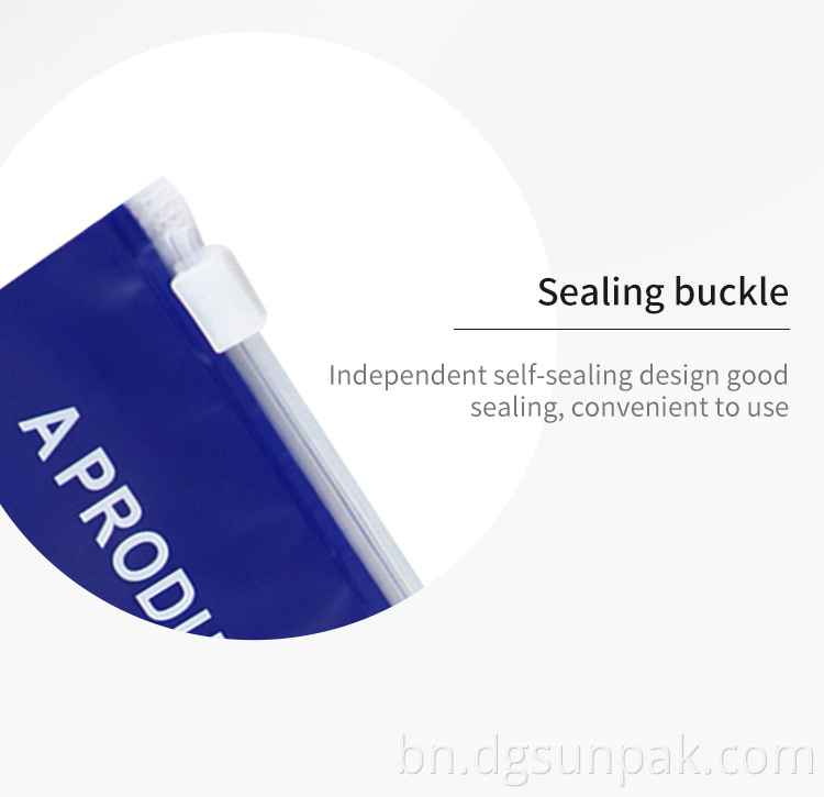 সিলিং পদ্ধতি এবং হ্যান্ডেল টাইপ: স্ব আঠালো সীল, জিপার শীর্ষ