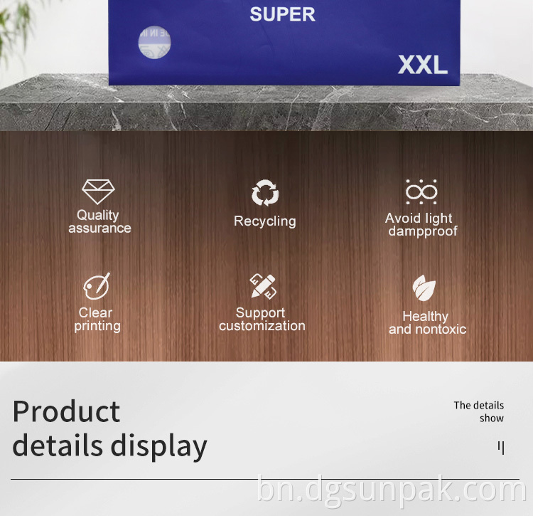 আমরা কাস্টম আকার এবং নকশা গ্রহণ. আমাদের সমস্ত প্যাকেজিং ব্যাগ আপনার আর্টওয়ার্ক এবং প্যাকেজিং প্রয়োজনের উপর ভিত্তি করে কাস্টম তৈরি করা হয়।