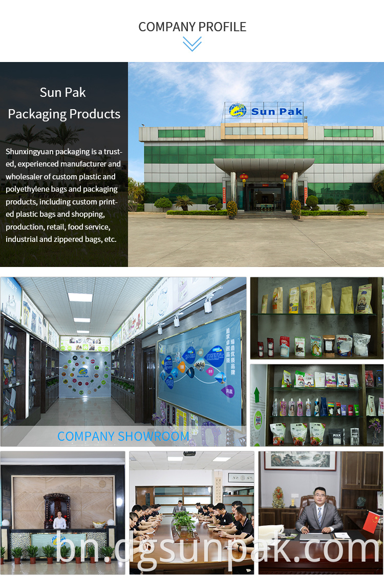 স্ট্যান্ড জিপার ব্যাগ, কম্পোজিট কার্ড হেড ব্যাগ, পিই/পিপি/পিও প্লাস্টিকের ব্যাগ, পিপি/পিই শীট প্যাকেজিং ব্যাগ এবং বাক্স ইত্যাদি।