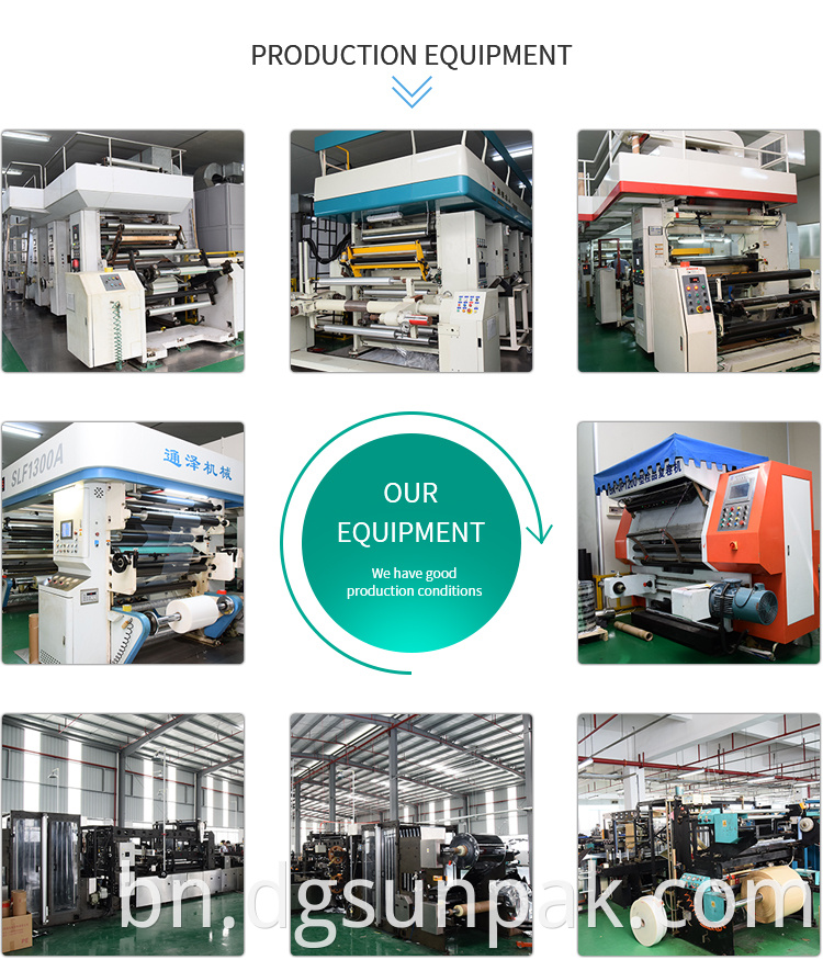 পোশাকের ব্যাগ, অ্যান্টি-স্ট্যাটিক ব্যাগ, ভ্যাকুয়াম নাইলন ব্যাগ, রিটর্ট পাউচ, ফুড রোল ফিল্ম, অ্যালুমিনিয়াম ফয়েল ব্যাগ, শ্যাম্পু ব্যাগ, কালি কার্টিজ ব্যাগ, জিপলক ব্যাগ