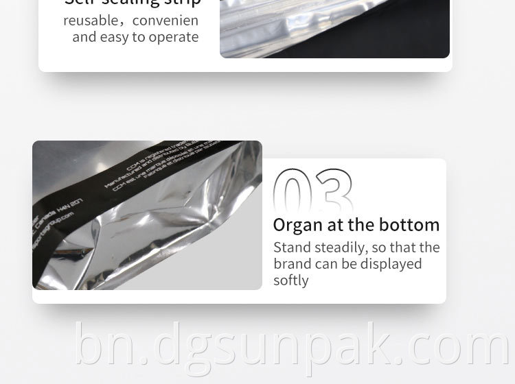 আমরা কাস্টম আকার এবং নকশা গ্রহণ. আমাদের সমস্ত প্যাকেজিং ব্যাগ আপনার আর্টওয়ার্ক এবং প্যাকেজিং প্রয়োজনের উপর ভিত্তি করে কাস্টম তৈরি করা হয়।