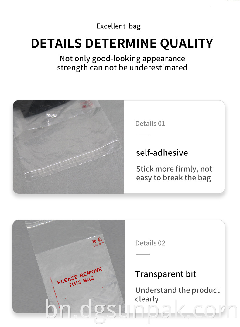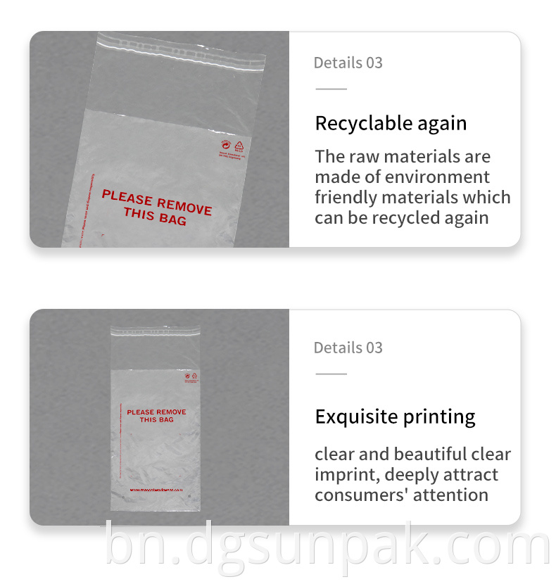• বিবরণ:Pe পোশাক পুনর্ব্যবহৃত প্যাকেজিং প্লাস্টিক ব্যাগ,স্বচ্ছ প্লাস্টিকের শপিং ব্যাগ,একক স্তর প্লাস্টিক শপিং প্যাকেজিং পলি ব্যাগ