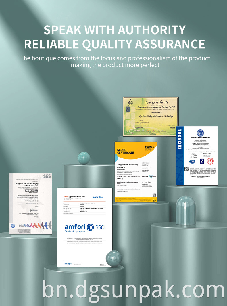 আমরা জিআরএস, অবক্ষয়যোগ্য, কম্পোস্টেবল শংসাপত্র পেয়েছি, সবচেয়ে পরিপক্ক পরিবেশ সুরক্ষা প্যাকেজিং ব্যাগ প্রস্তুতকারক